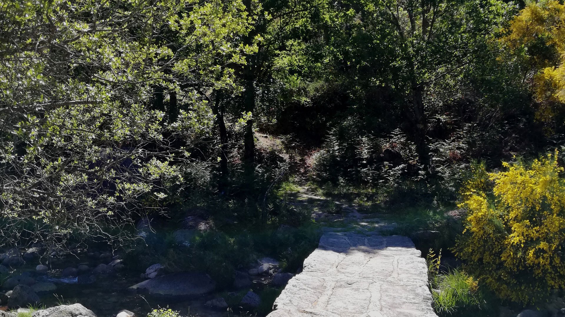 Depois de percorrer cerca de um quilómetro pelo carvalhal de Tieiras, o percurso atravessa novamente a estrada municipal, passa a ponte sobre o rio de Tieiras, percorre a zona de bosque junto a uma antiga casa florestal e, cerca de dois quilómetros depois, encontra novamente a estrada municipal, cruzando-a outra vez, na ponte sobre o rio da Peneda. Restam cerca de dois quilómetros para o final da etapa. Logo depois de passar a ponte, viramos à direita e entramos num caminho estreito que dá acesso aos pequenos campos agrícolas, instalados nas margens do rio. Mais à frente irá passar um pequeno pontilhão que se lança sobre o rio da Peneda, num local soberbo para se refrescar, se o tempo assim o permitir. Prossiga sempre para sul, acompanhando o rio. Nesta fase do percurso irá saltando da estrada municipal para os caminhos agrícolas, permitindo apreciar o mosaico agrícola do vale da Peneda.
